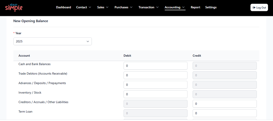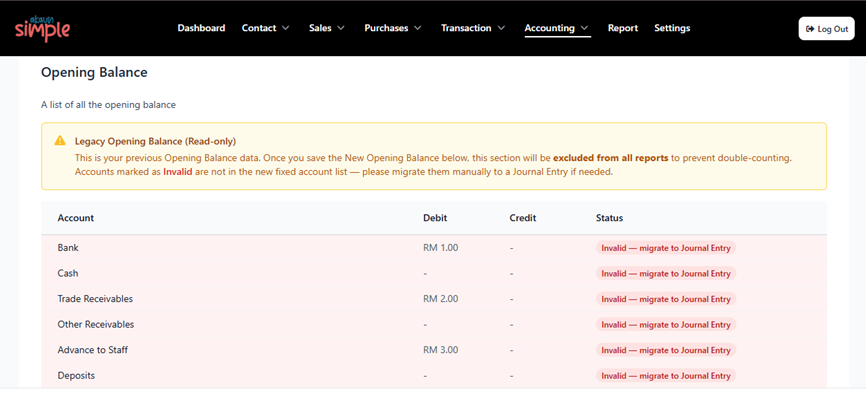 - ❌ User tidak boleh tambah akaun baru dalam Opening Balance